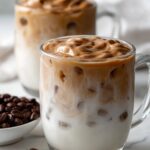 - Top with Whipped Coffee: Divide the whipped coffee foam evenly between the two mugs, spooning it gently over the milk and ice.