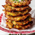 For a fun party appetizer, I arrange mini fritters on a platter with toothpicks and a trio of dipping sauces like tzatziki, a spicy aioli, and classic sour cream. Layering them in a stack with dollops of herbed yogurt between makes a visually stunning and delicious treat perfect for sharing.